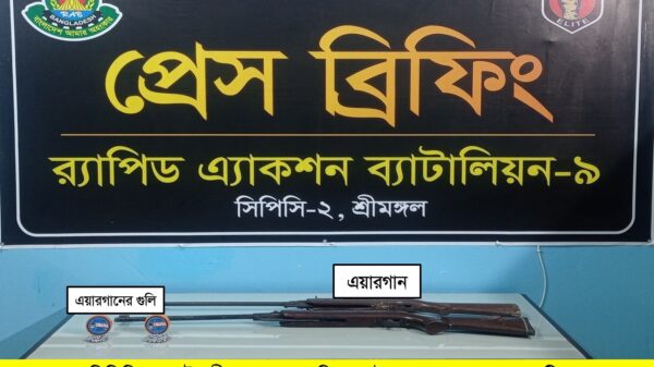 বড়লেখা প্রতিনিধি: বড়লেখা উপজেলার চান্দগ্রাম বাজারের বদরুল এন্ড ব্রাদার্স ষ্টোর নামক একটি মোদি দোকানে সোমবার রাতে র্যাব-৯ এর একটি আভিযানিক দল অভিযান চালিয়ে ২৯ বস্তা ভারতীয় চোরাই চিনি উদ্ধার করেছে।
