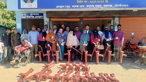 কমলগঞ্জ (মৌলভীবাজার) প্রতিনিধি :: মৌলভীবাজারের কমলগঞ্জ প্রেসেক্লাবের আয়োজনে ও ‘ইটারনেল গিভিং’ এর সহযোগতিায় উপজেলার ২৫টি অসহায় ও দু:স্থ পরিবারের মাঝে বিশুদ্ধ পানির জন্য টিউবওয়েল বিতরণ করা হয়েছে। বৃৃহস্পতিবার (২৭ নভেম্বর)