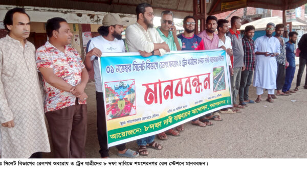 কমলগঞ্জ (মৌলভীবাজার) প্রতিনিধি:: সিলেট-ঢাকা ও সিলেট-কক্সবাজার রেলপথে দু’টি স্পেশাল ট্রেন চালু, আখাউড়া-সিলেট রেলপথ সংস্কার ও ডুয়েলগেজ ডাবল লাইনে উন্নীতকরন, ট্রেনের টিকেট কালোবাজারী রোধ, আখাউড়া-সিলেট সেকশনে লোকাল ট্রেন চালু, বন্ধ সকল