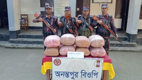 কুড়িগ্রাম প্রতিনিধি :: কুড়িগ্রামের ফুলবাড়ীতে মাদক বিরোধী বিশেষ অভিযান চালিয়ে বিপুল পরিমাণ ভারতীয় গাঁজা উদ্ধার করেছে বিজিবি। সোমবার (১৭ নভেম্বর) রাত সোয়া নয়টার দিকে উপজেলার অনন্তপুর সীমান্ত এলাকায় অনন্তপুর বিওপির